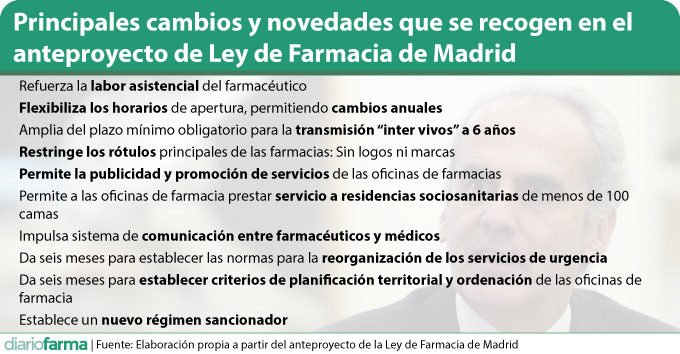 En el caso de la farmacia sólo se contemplan: nuevas aperturas, traspasos y amortizaciones de farmacias. Con la limitación que la propiedad debe ser de una persona física, con el título oficial de farmacéutico, o de una comunidad de bienes entre farmacéuticos.