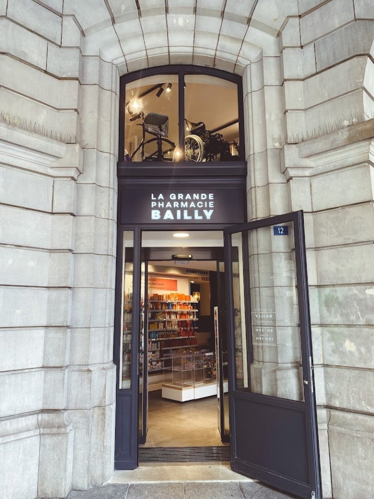 Con variaciones, la Gran Farmacia de Bailly muestra el camino hacia donde se dirige la farmacia.